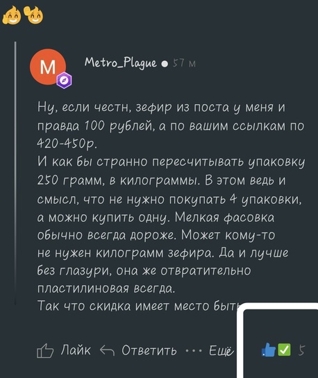 Все это до 400 руб/кг если что. Скидки на зефир в последнее время только я со спикером кидали. Где было 180-220 +- за кг.