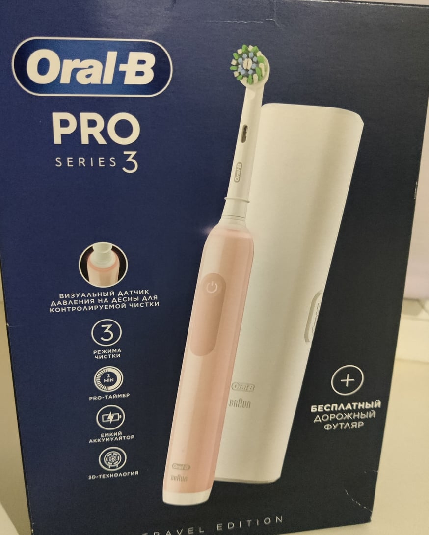 Купил для себя розовую с Яндекса, т.к. не хотел черный глянец, которая была по акции за 3.3 т.р. недавно. Похоже она уйдет на подарок новогодний. Старая щётка Браун истрепалась, начала слазить резина на ручке. Не смог пройти мимо, т.к. насыпали 3.5 тыс бонусов, которые сгорают 29 декабря. Пришлось взять черную и плюсом 2 по 6 шт насадок кроссэкшн. Дёшево за упаковку на 4 и 6 шт сейчас.