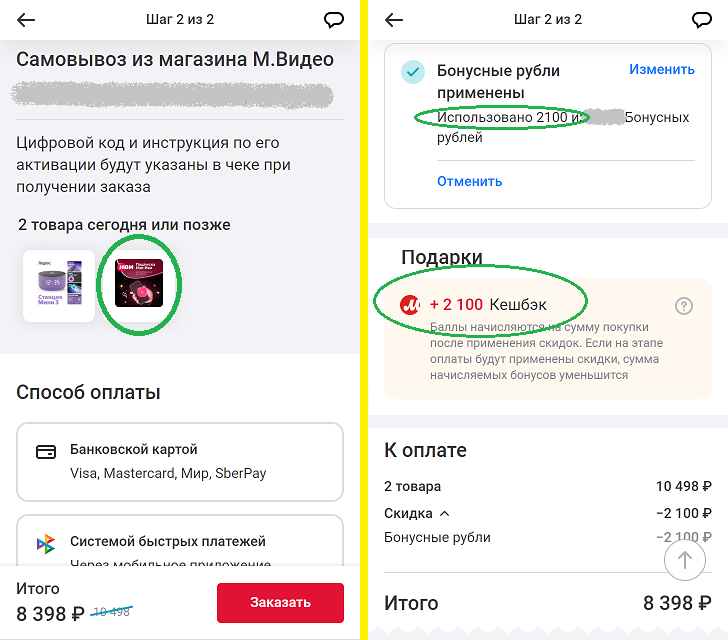 Добрый день, хочу купить пылесос Код товара: 4003 7619 4. Стоимость 61999, если добавить подписку иви за 100р вернется 25% кэшбека бонусами, кто сможет помочь?