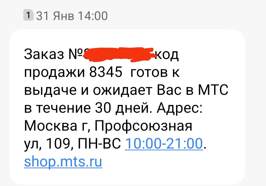 Один заказ был сразу оплачен онлайн с самовывозом в одном салоне, второй выбрана оплата при получении в другом салоне. Через полчаса мне пришли смс сообщения что заказы готовы к выдаче и я поехал их забирать.